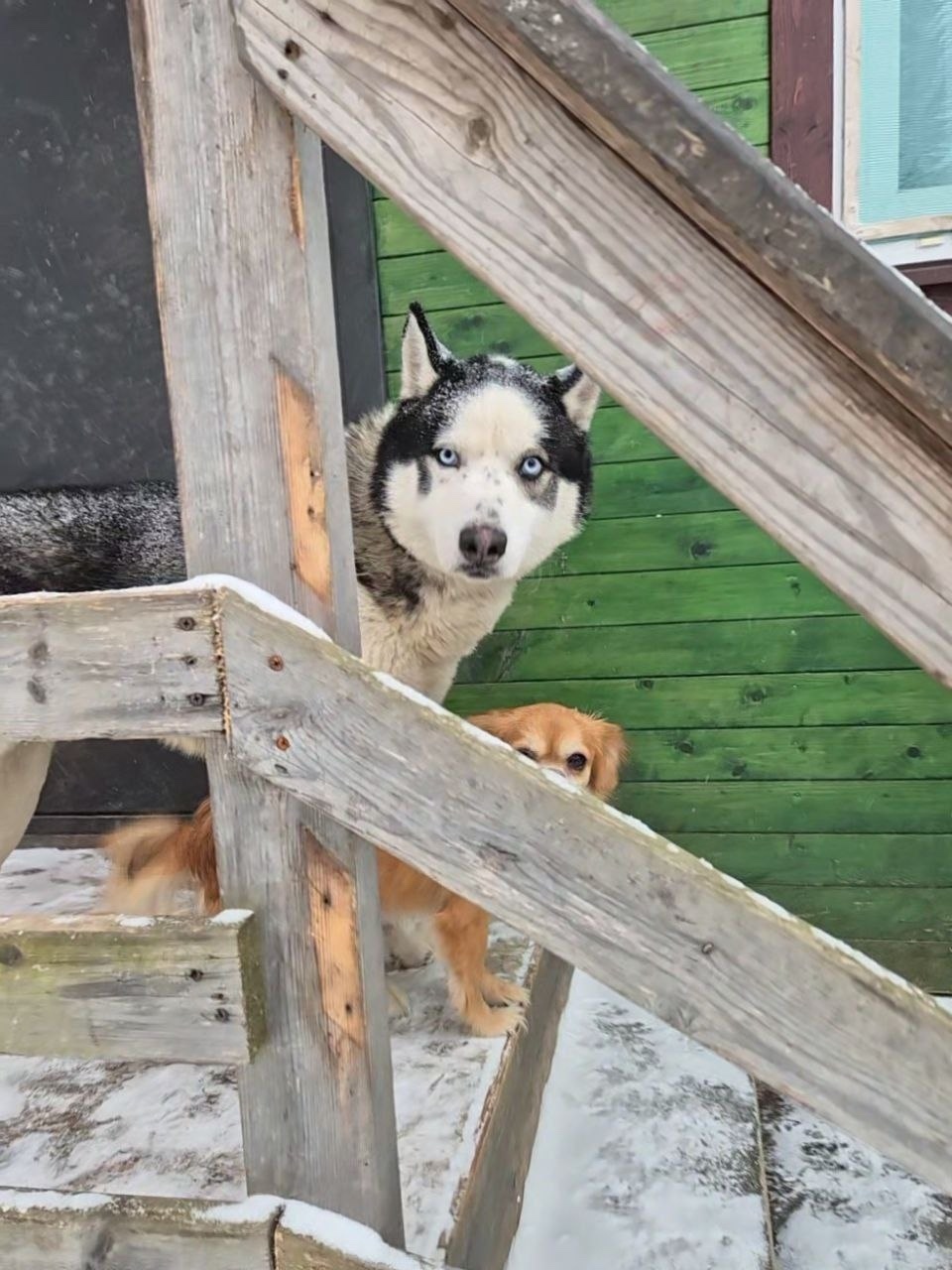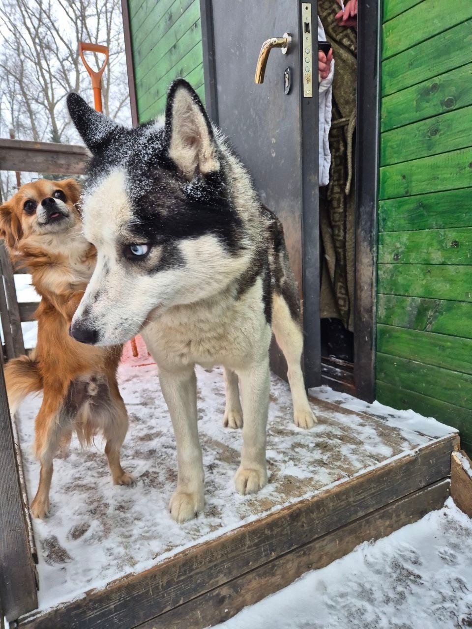 На участок прибилась хаски. Может кто ищет? Предположительно могла прибежать из соседних районов (Подольск/Серпухов). Жители не готовы ее оставить и вызвали отлов.