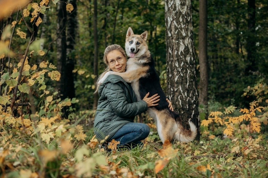 Аглая - разноглазая волко-хасочная красотка, попала к нам недавно в приют по отлову. Она совсем не приютская, ей некомфортно здесь из-за собак, они ее пугают😥 Только в лесу на прогулке она расслабляется и растворяется в общении с человеком.