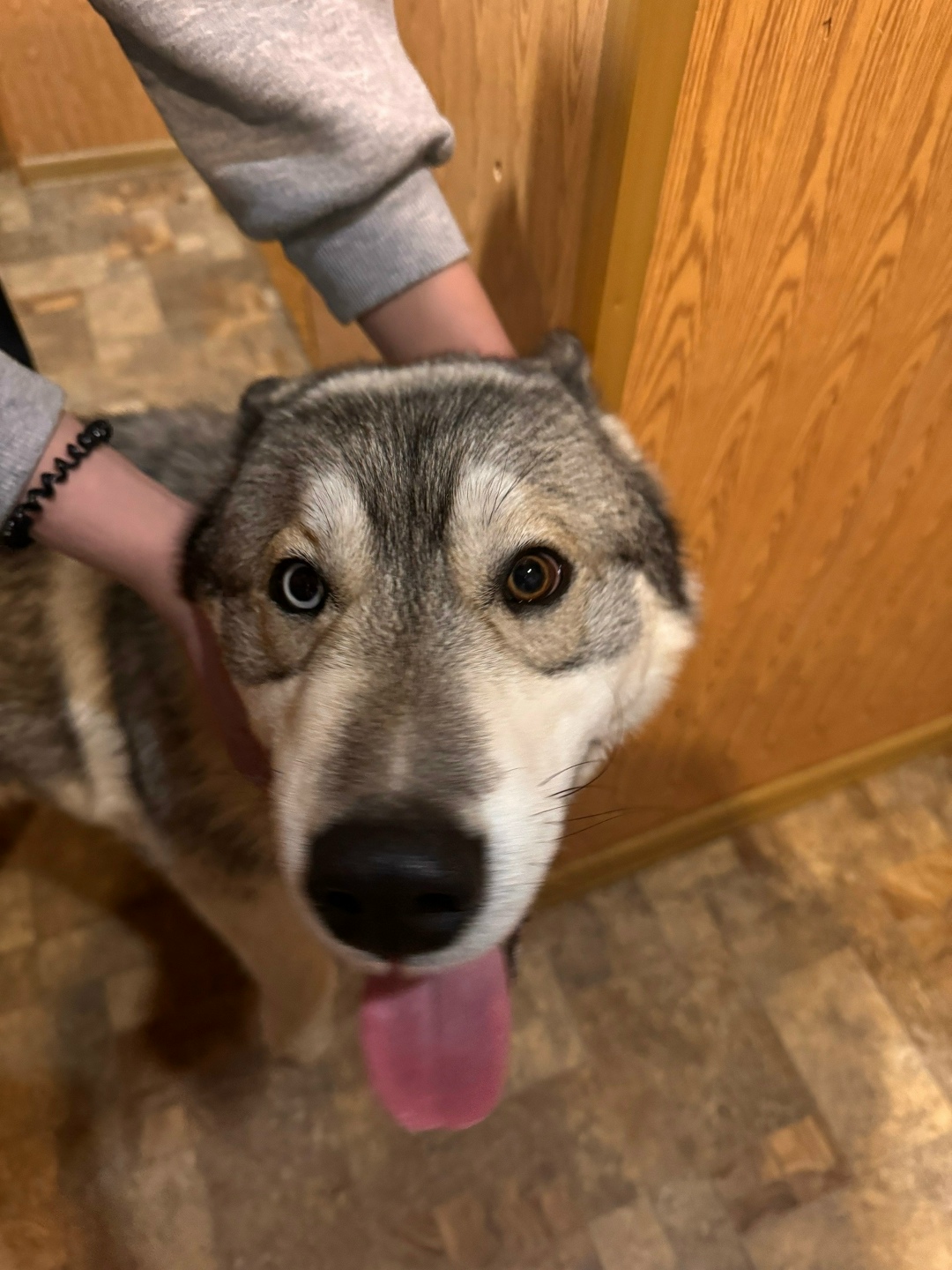 Похож на хаски, разные глаза. Ошейника нет. Ухоженный, видно, что домашний. Хозяин, найдись!!! Долго держать не сможем😔