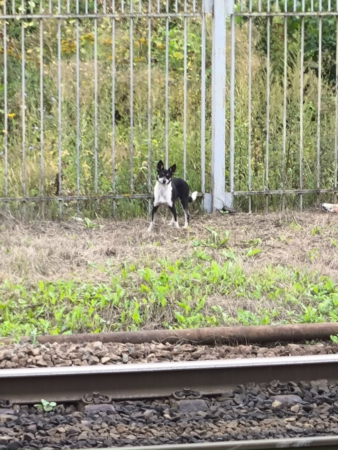 ул.Лапино .Возле магазина пятерочки бегает пёс вокруг жд путей.Может кто то потерял.