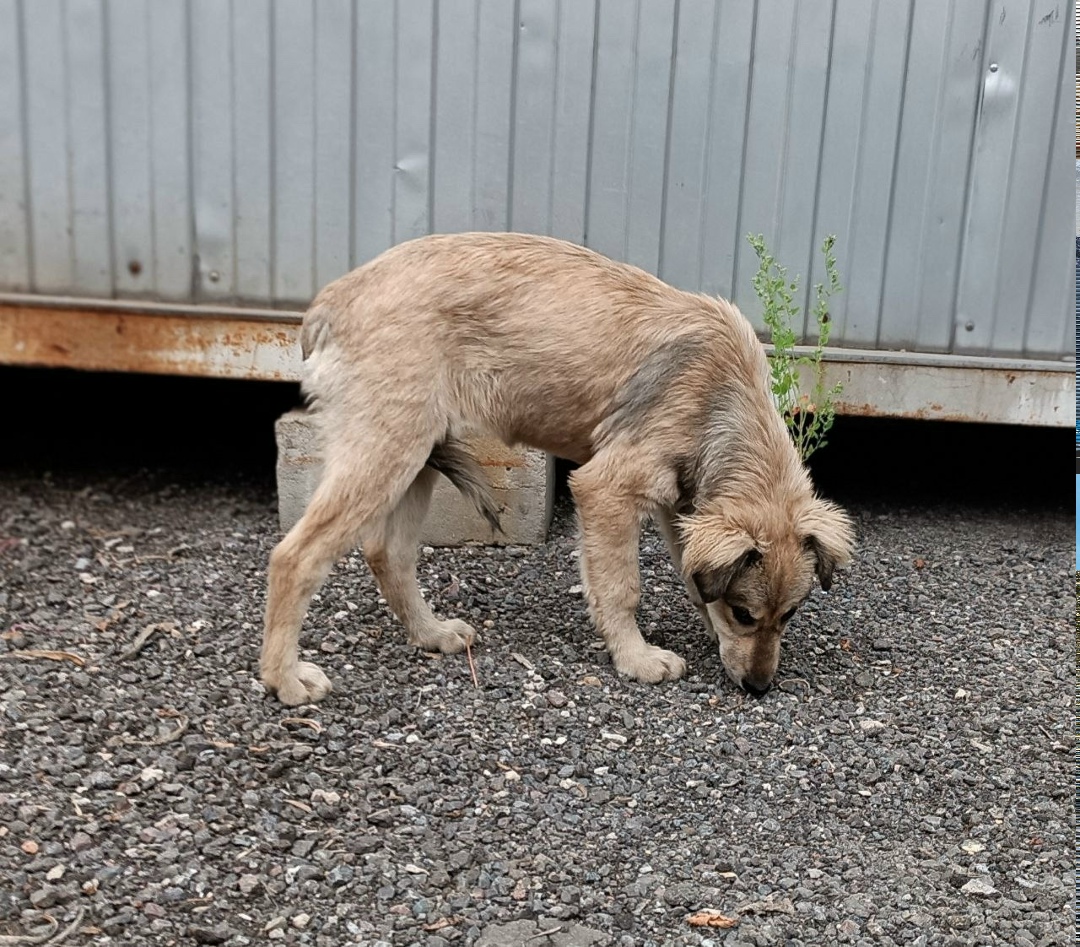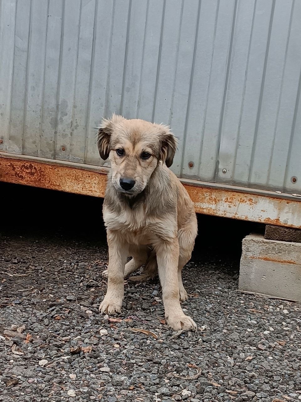 Найден щенок, девочка, 4-5 месяцев. Очень напугана, хвостик прям к животу поджимает. Без амуниции.