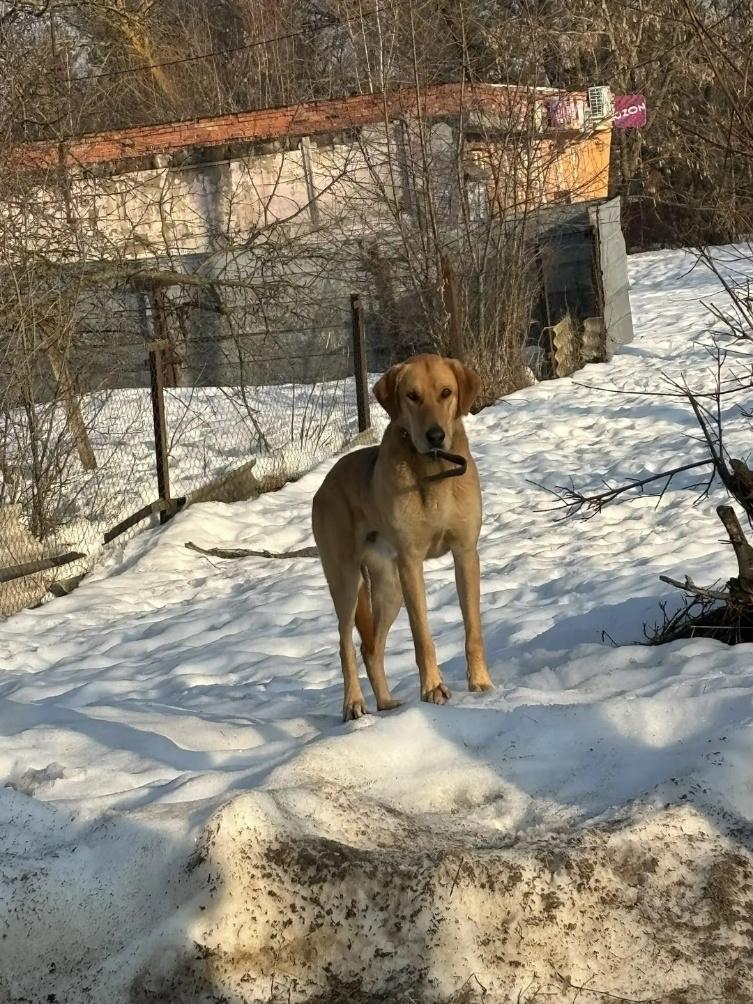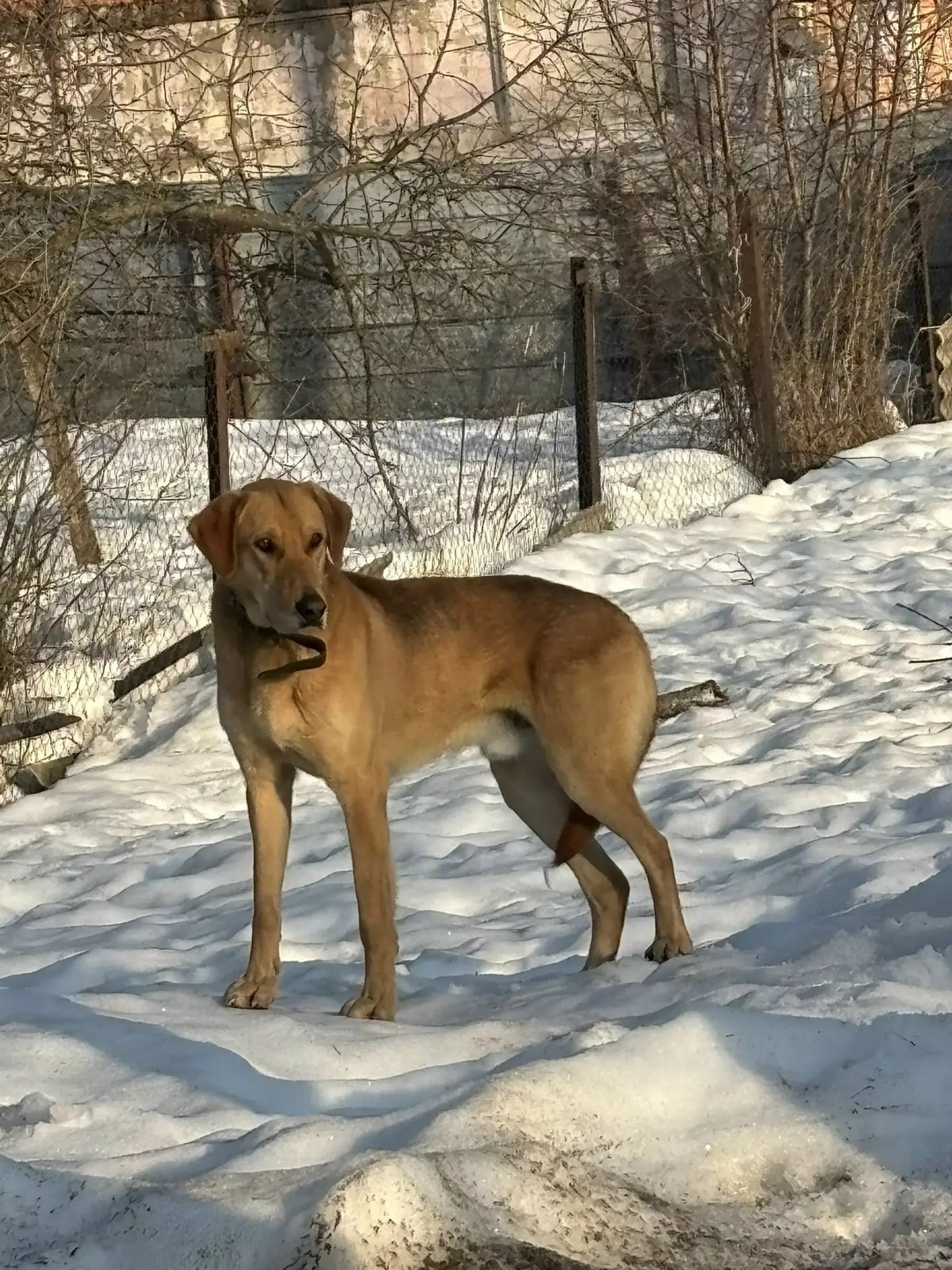 Собака очень большая, и очень голодная - видны даже ребра. По возможности подкармливает, но такому благородному псу нужен хозяин- может новый, может старый.