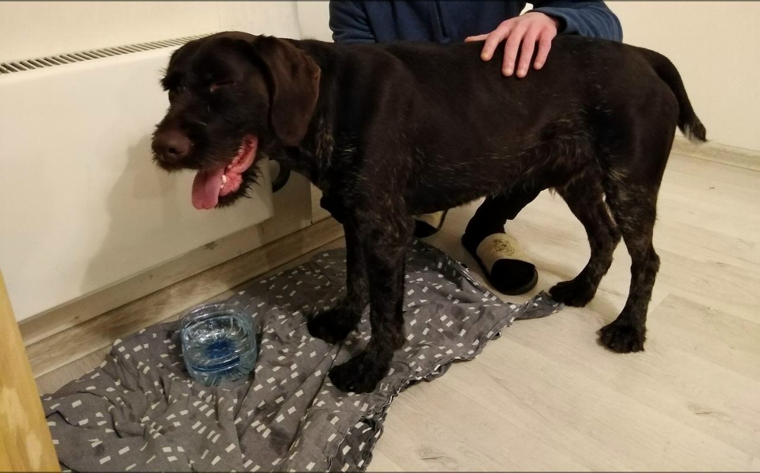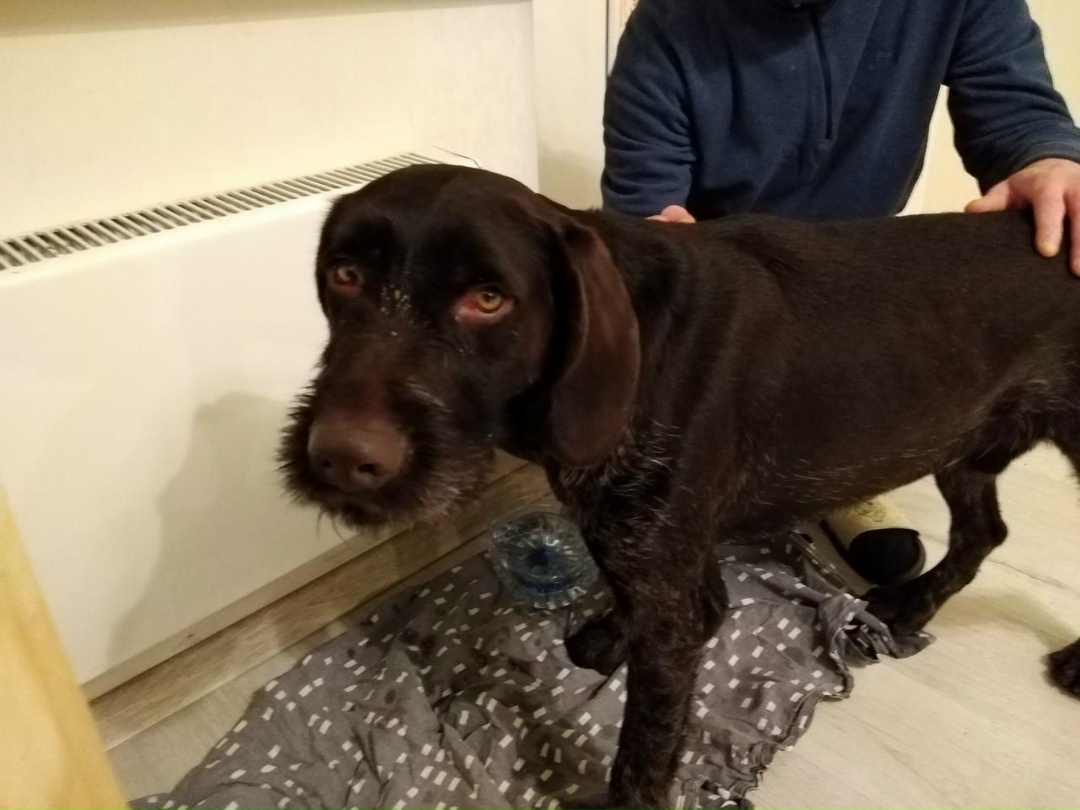 Нашлась собака немецкий дратхаар, бегал возле стадиона "Автомобилист" срочно ищем хозяина