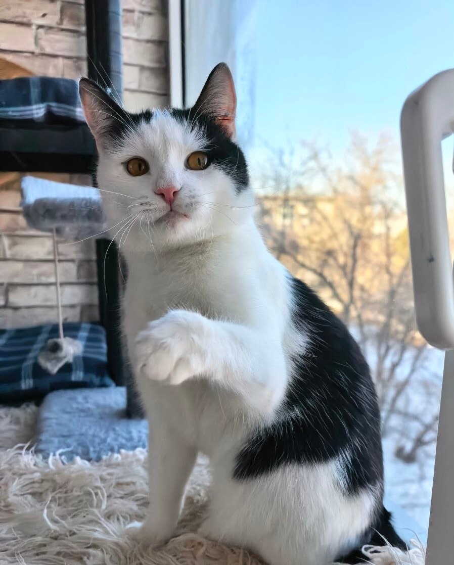 Ему всего около 10 месяцев. Уже кастрирован, обработан, знает лоток и когтеточку. Но главное — он так боится снова оказаться на улице! Ведь его нашли замерзающим, бегущим за прохожими и плачущим, будто умоляя не бросать его. Он явно был домашним, но прежний хозяин так и не откликнулся...😔