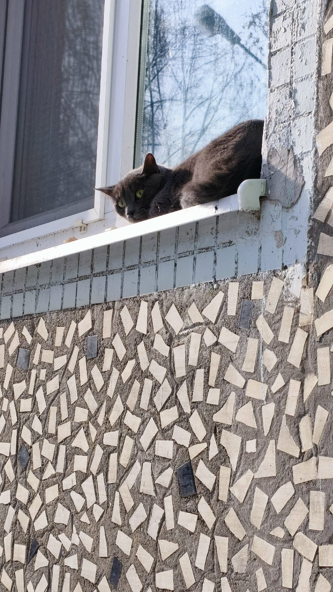 Просидел котенок с 10 утра до 15 часов на подоконнике. В 15 часов сняли. Домашний. Боится улицы. Ползал на животе. Кушать не стал. Уполз в подвал дома.
