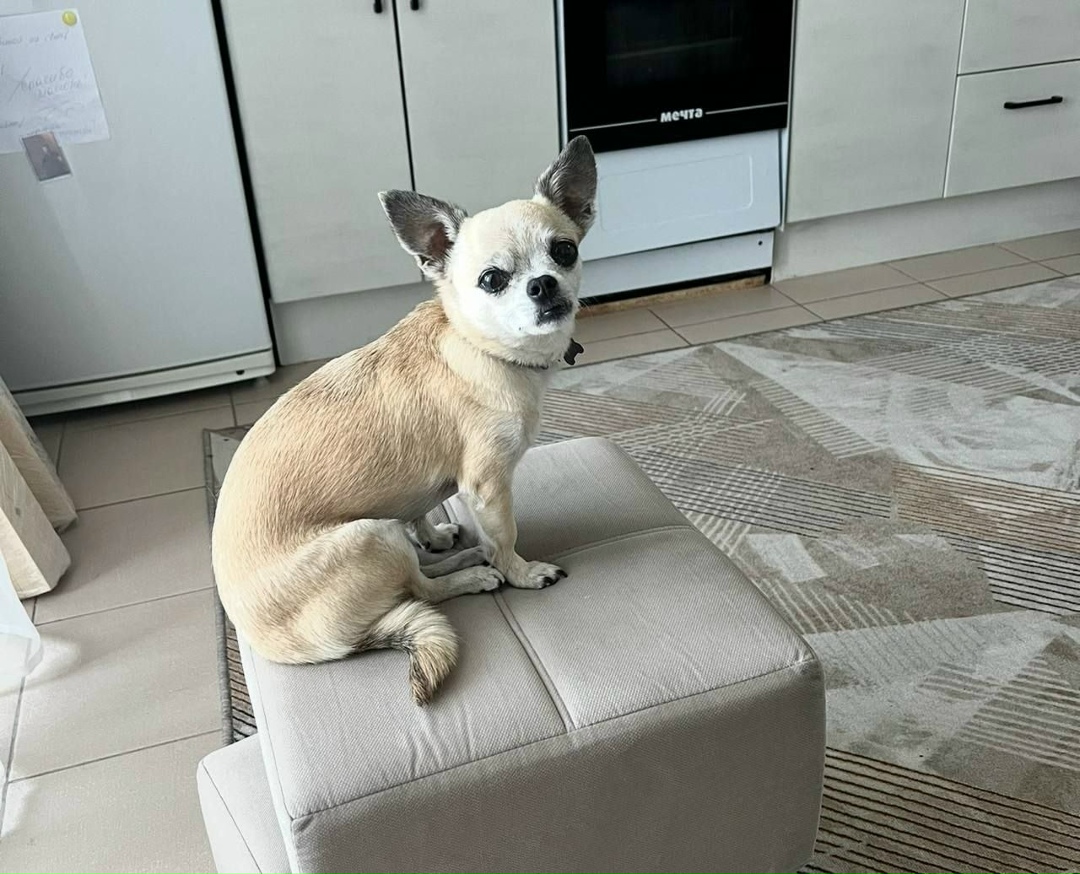 Чихуахуа, девочка, 8 лет, в ошейнике, есть адресник, окрас бежевый.