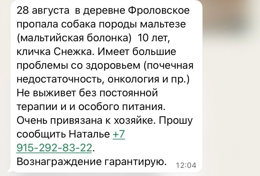 Потерялась мальтийская болонка. 10 лет. Онкология, собака на терапии. Помогите найти малышку. Она очень привязана к