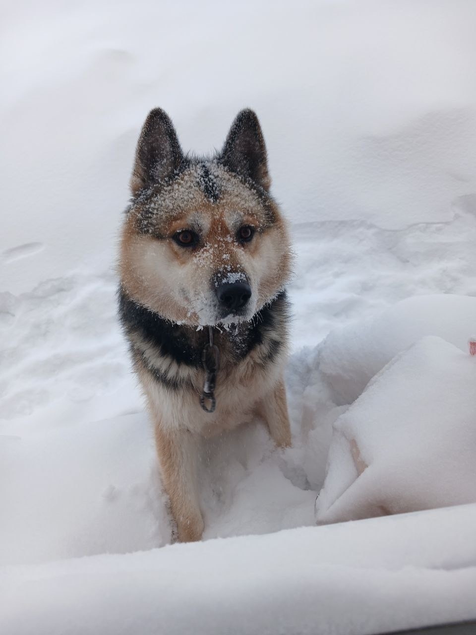 Молодой, красивый пес, с ошейником и карабином прибился на Прибрежном к одному из домов. Может кто узнает потеряшку?
