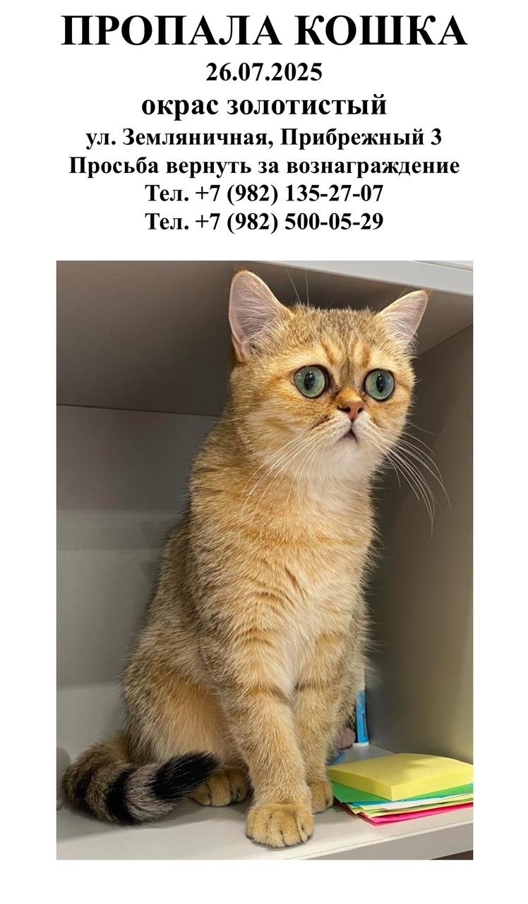 26.07 Пропала кошка в районе ул.Земляничная, дачный кооператив Прибрежный 3. Просим сообщить любую информацию о ней, сразу позвоните, попытайтесь приманить.