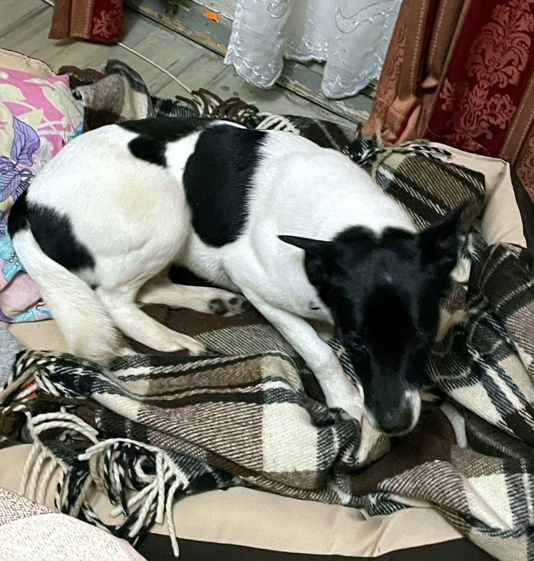 И вот Юма уже неделю дома, и мы видим, что у нее все хорошо - теперь она живет в квартире, спит на просторной лежанке и желает своей подружке Яшме тоже поскорее уехать домой.