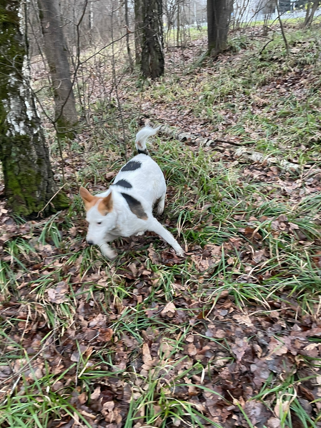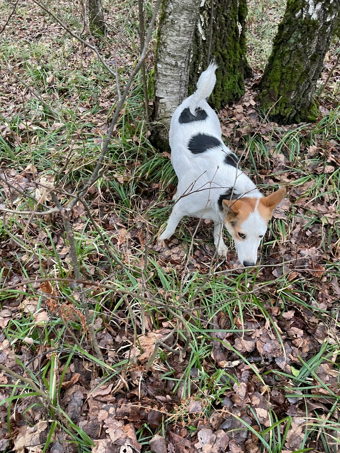 В Гурьяновском лесу увидели собаку, с ошейником. У нее явно потерянный вид, ищет своих, оглядывается. Гуляем по лесу уже час, а хозяев не видно. Может у кого потерялась?