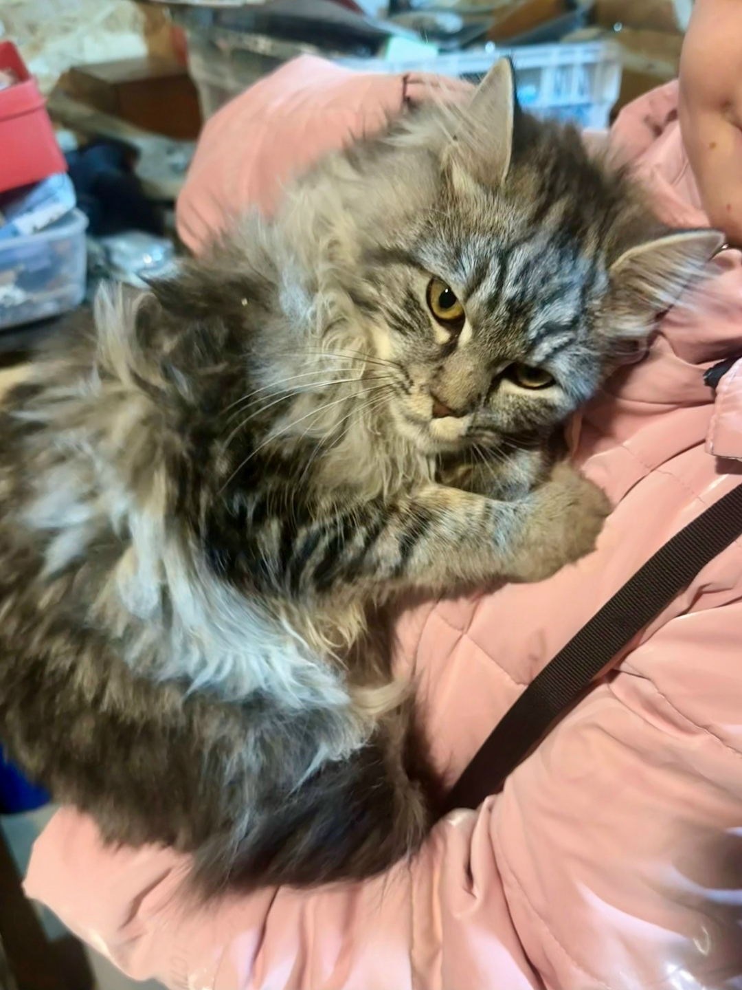 26.11.25 в 8:00 на территории 13-ой школы (Обнинск, Калужская 11) найден напуганный, промокший, трясущийся кот, он забежал в школу, но его от туда выгнали.