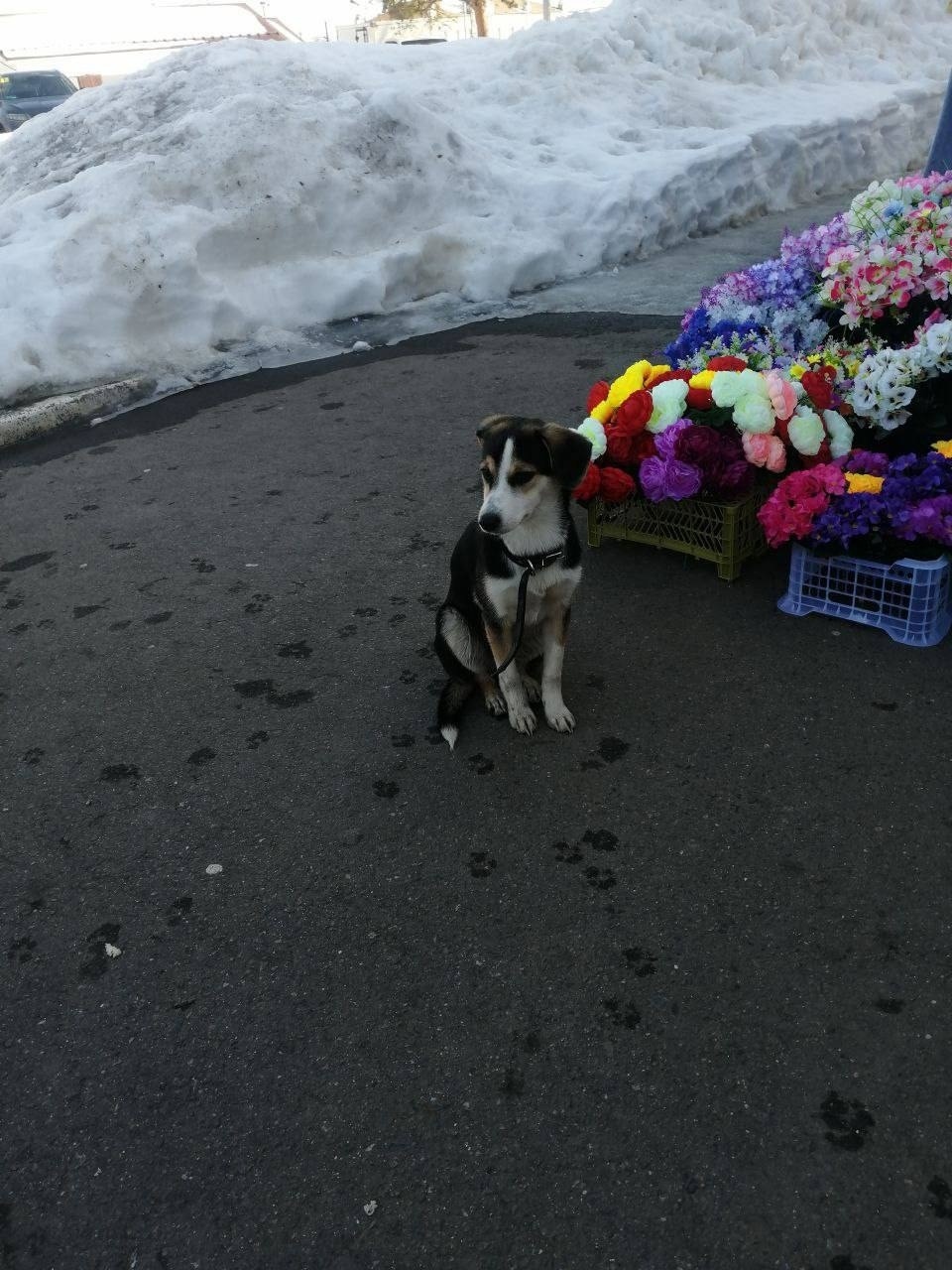 Найдена собака! ! Уже 3 день на улице в Михнево (Мо) бродит трехцветная некрупная собака. Очень ласковая, подходит ко всем людям, в ошейнике, на вид возраст мес 6-8.