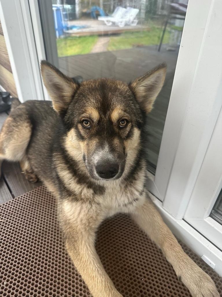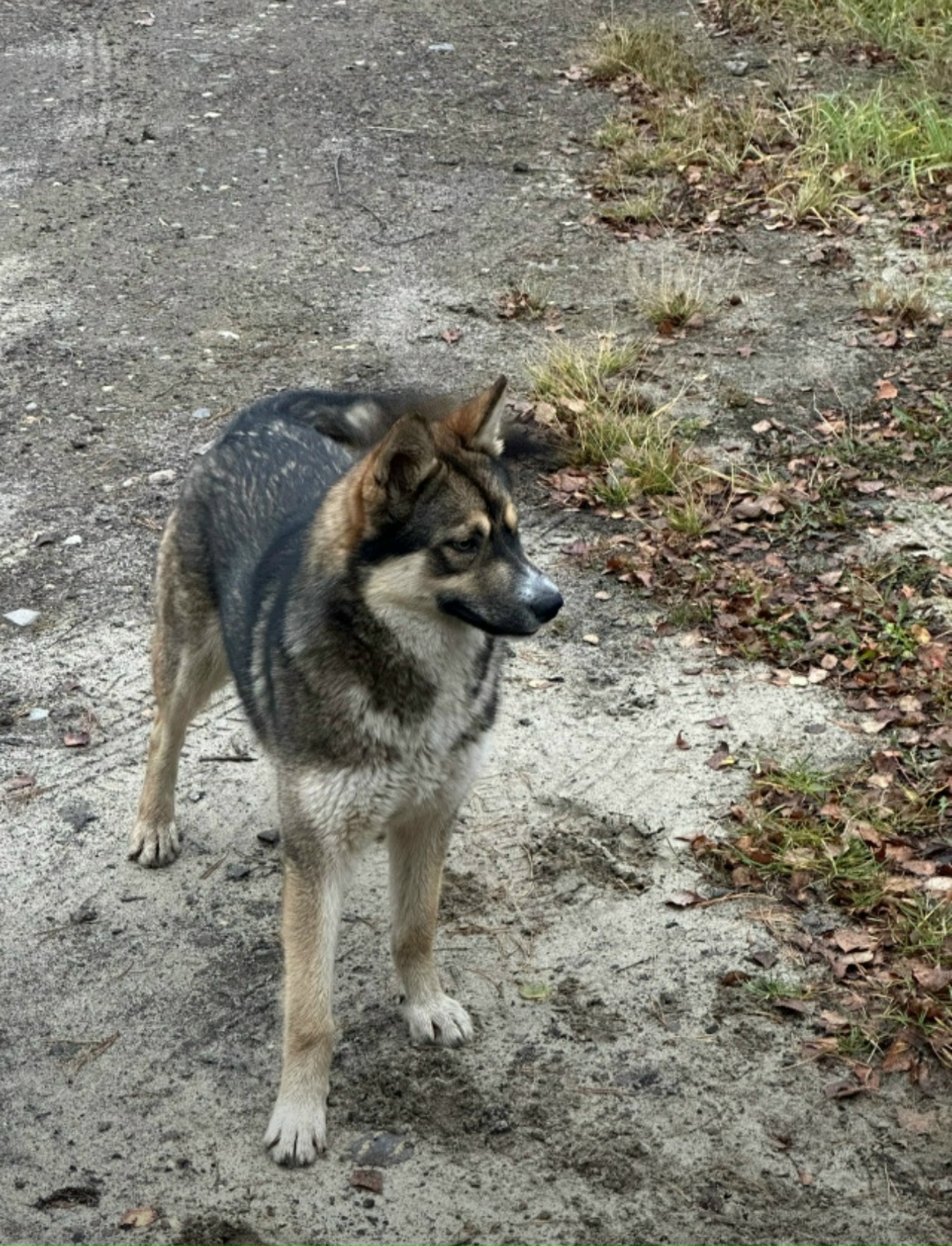 В СНТ Спринт Павлово-Посадский г.о. д Дальняя найден щенок. Метис хаски, девочка, на вид 6-7 месяцев, выcoта в холке 45 см, вeс 21 кг.