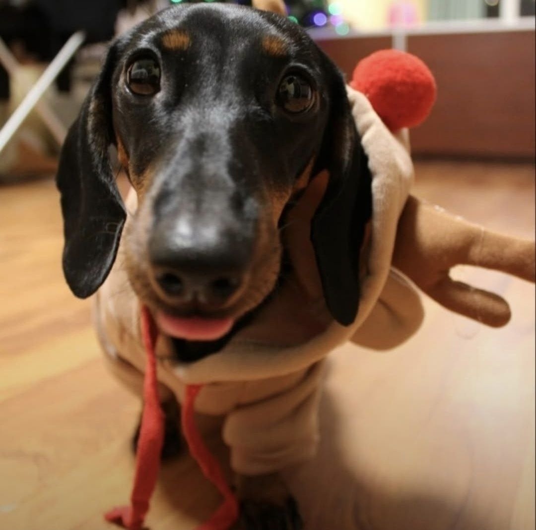 Пропала карликовая такса, девочка, кличка Несси. На момент пропажи была в кофточке, как на фотографии (могла слететь!). Под кофтой была шлейка.