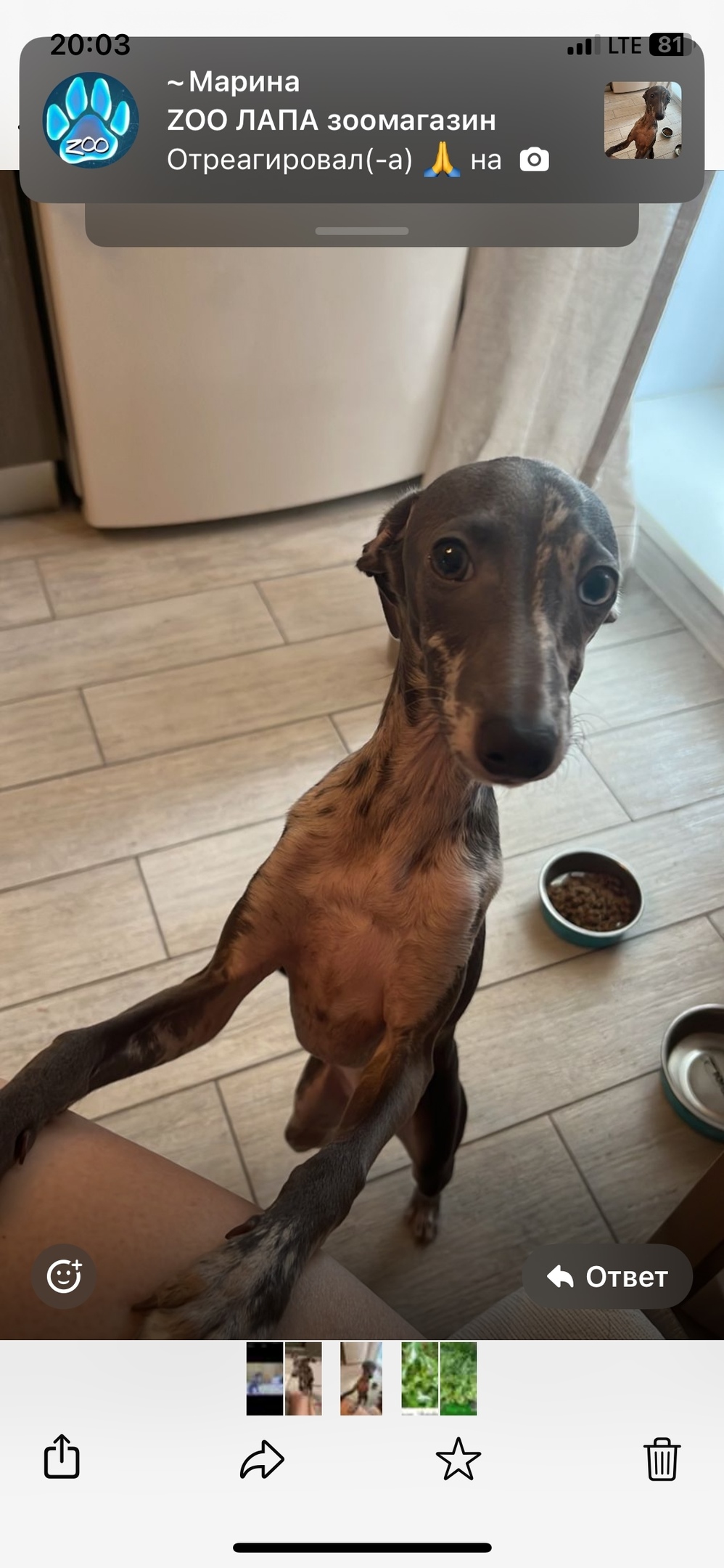 Д. Вертлино пропала собака , левретка , вознаграждение гарантируем 89031837485