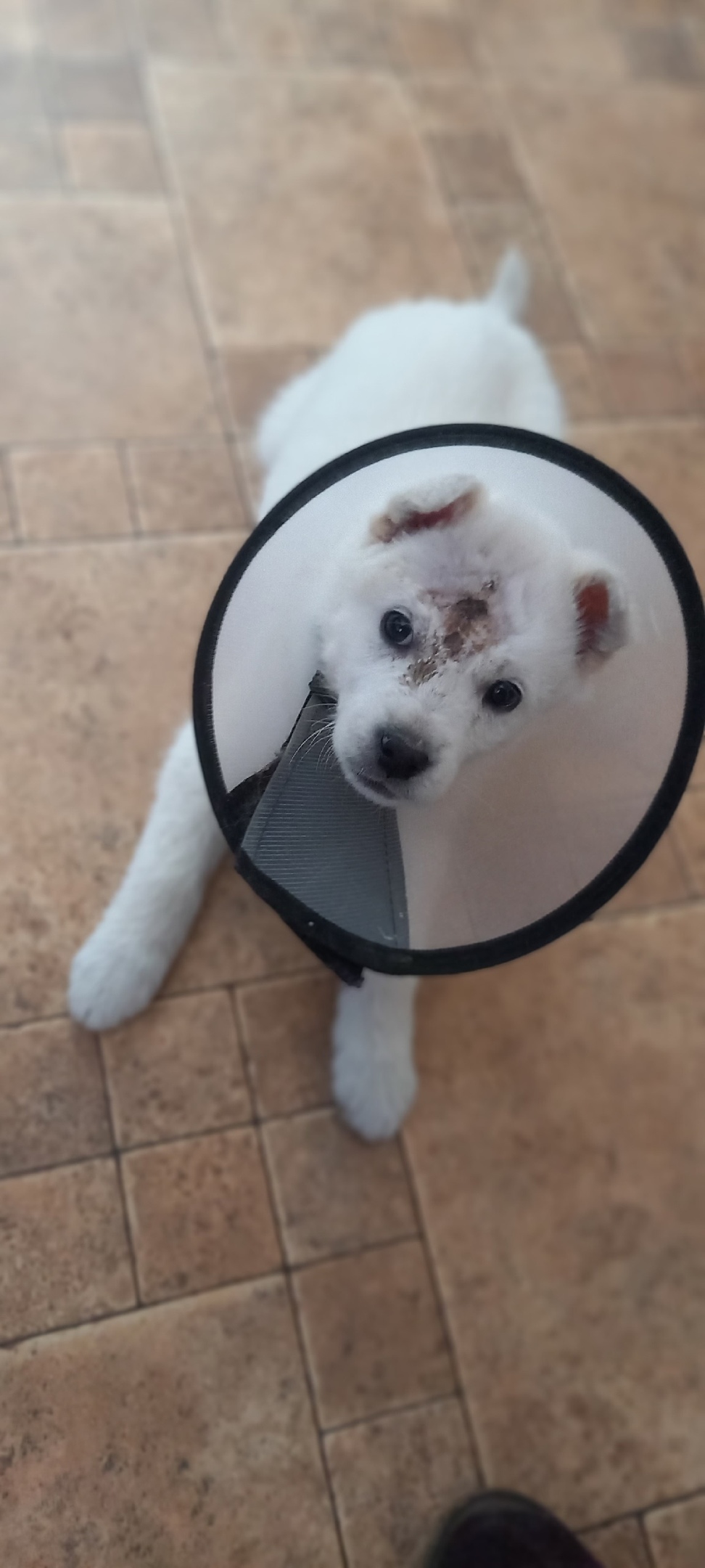 Пристраивается щенок мальчик,родился в начале февраля на промзоне,был найден 8марта,его укусила собака за голову,была огромная гематома,сейчас все прошло,проглистован,будет размером с лайку.89042023989