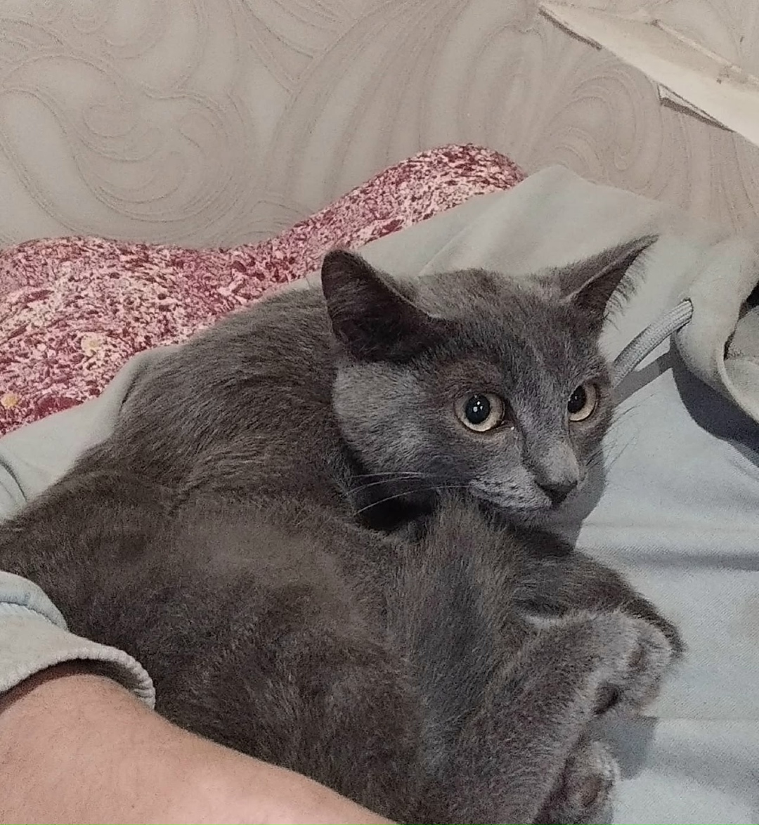 🆘🆘🆘Потерялся с передержки котенок!!! Район ж/д вокзала. Фенотип Британки, зовут Мышка. Примерный возраст 5 месяцев. Над правым глазом болячка. Киска нуждается в лечении. Огромная просьба кто увидит, если сможете поймать будет замечательно, мы сразу же приедем. Если не получится поймать, то по возможности сфотографируйте и тоже звоните сразу!!! Пишите мне в личку или звоните по телефонам