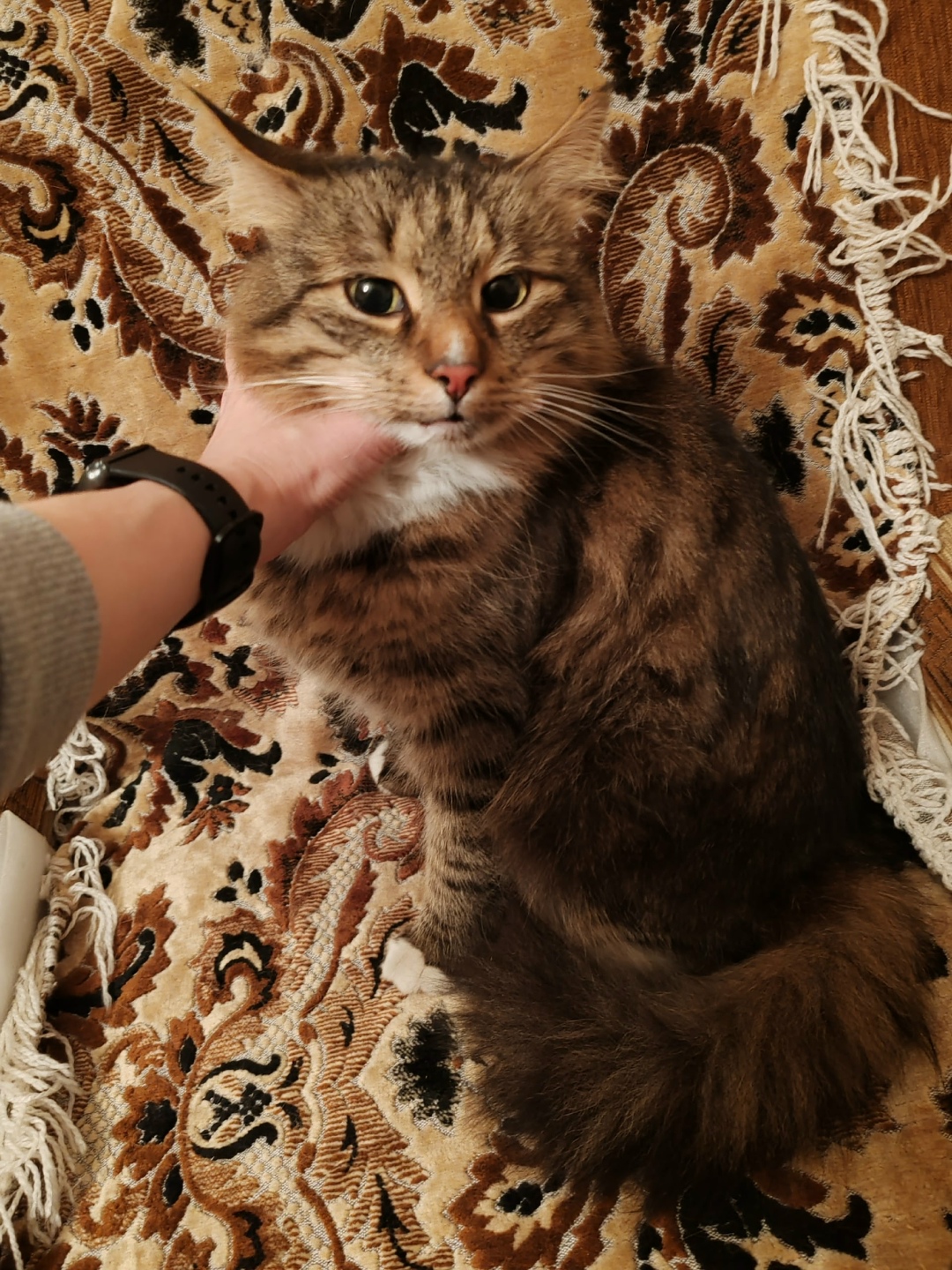 На Челюскинцев 9, найдена камышовая пушистая кошка. Ласковый, ручная. Срочно ищем старых или новых хозяев.