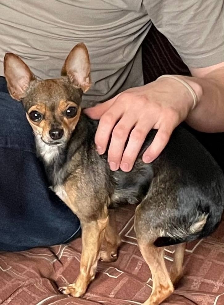 Пропала собака по кличке Кнопка. От громких звуков испугалась и сбежала в районе Савино, улица Калинина (Шины у Ирины)