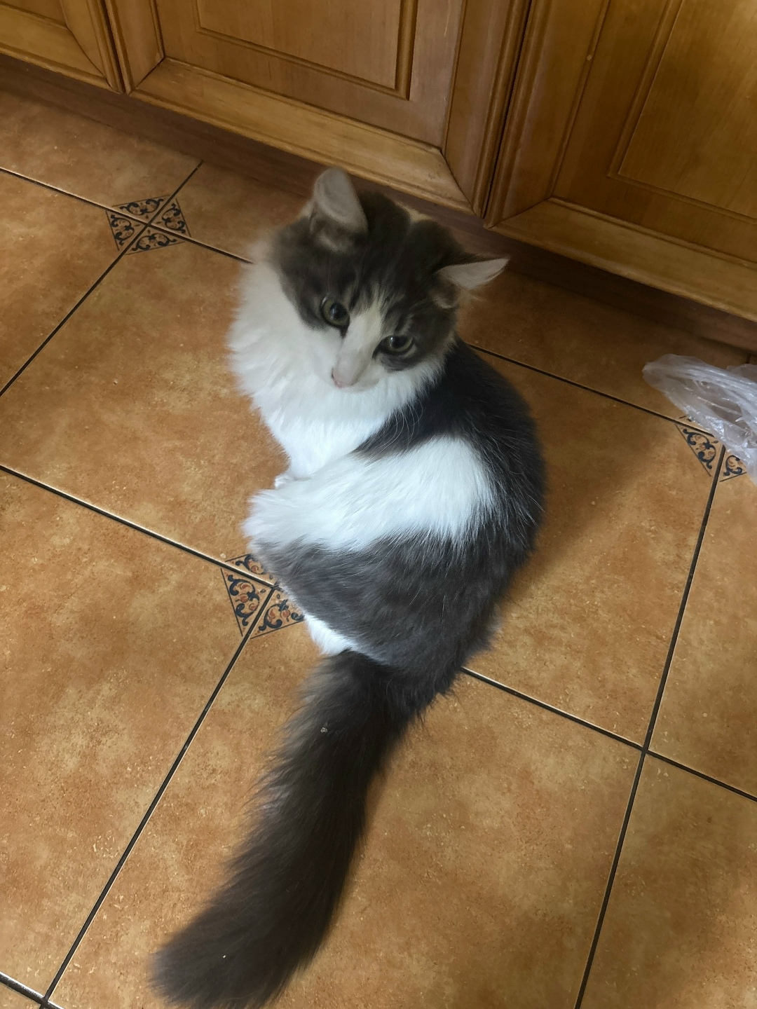 Потерялся бело-серый,пушистый кот, Район Абрамово, улица Хользунова, подозреваем что могли подобрать. Коту год, очень тактильный, не боится машин, очень хотим чтобы он нашелся.
