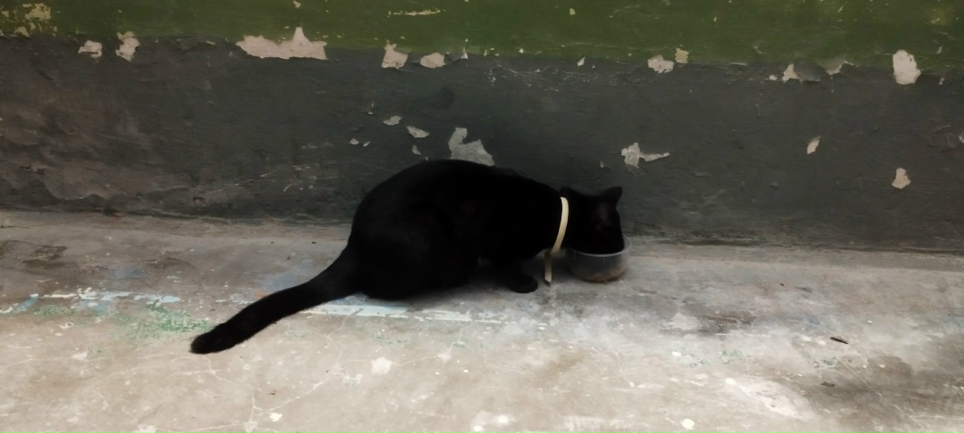В подъезде сидит кот, чёрный, в ошейнике, лапки и грудка немного белые. Если его кто-то потерял, напишите, я скажу где именно