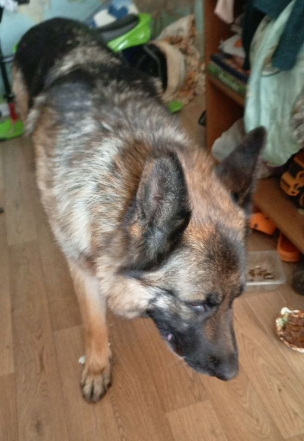05.04. Контактная, чепрачного окраса, есть след от ошейника.