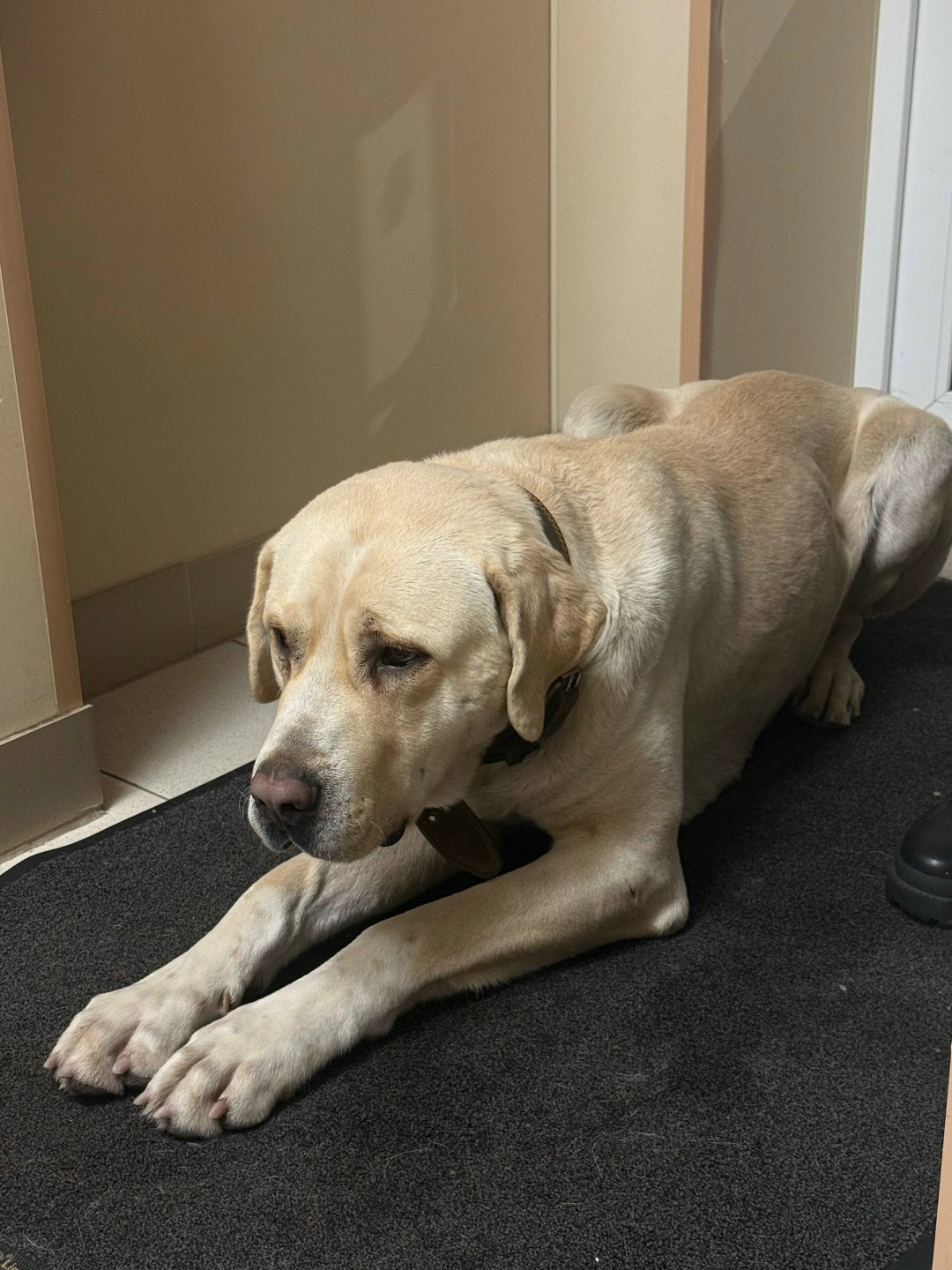 Найдена собака на киевском шоссе, собака ухожена, ногти стрижены. Видно домашняя.
