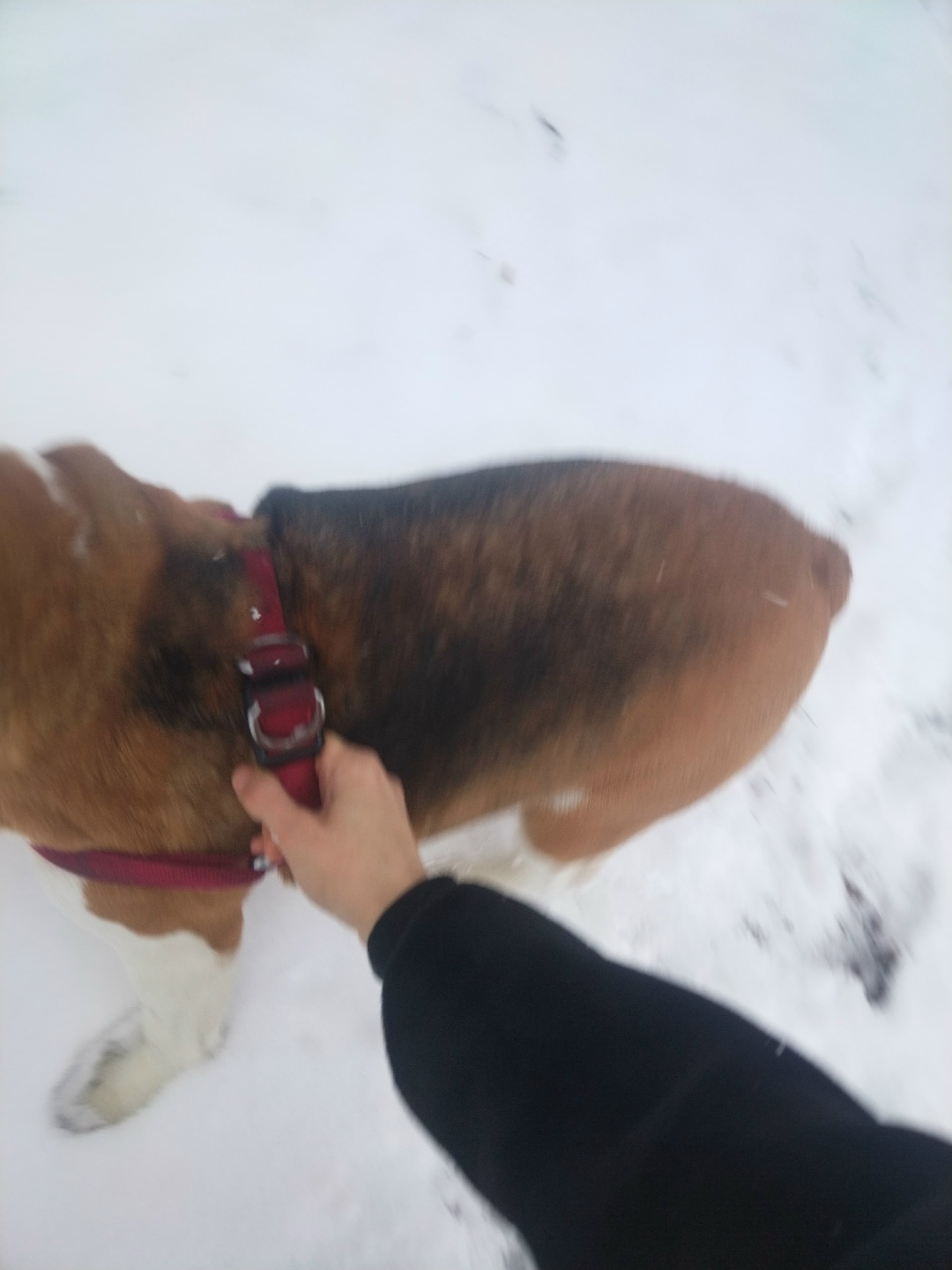 Большие Колпаны. Чей пёс? Пыталась придержать возле Администрации, но вырвался и убежал в сторону заезда, где написано "Гатчинское".