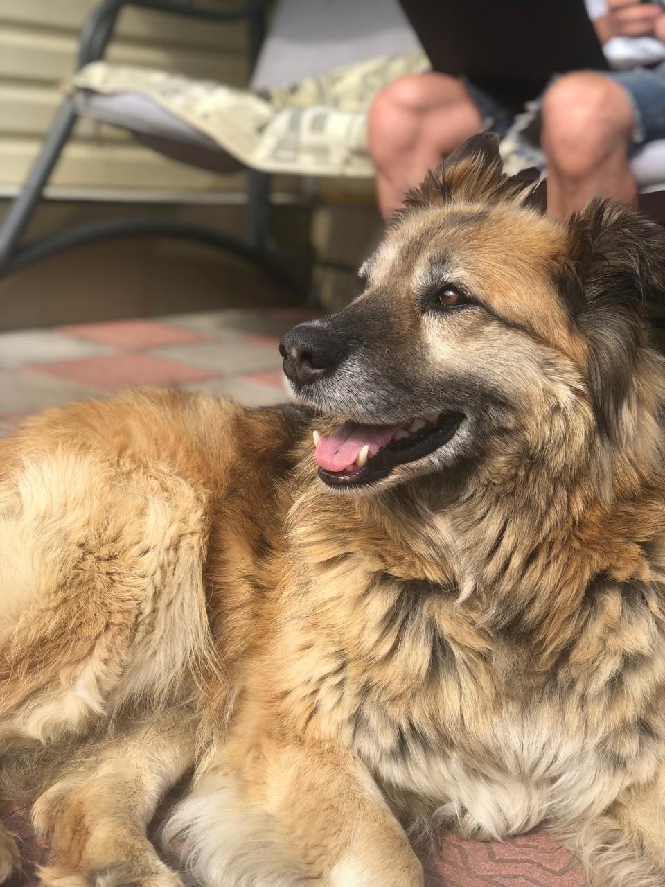 Мохнатый, рыжий, одно ухо стоит, второе опущено. Глухой. Очень переживаем и ищем в районе Мариенбург, Аэродром и территории рядом.