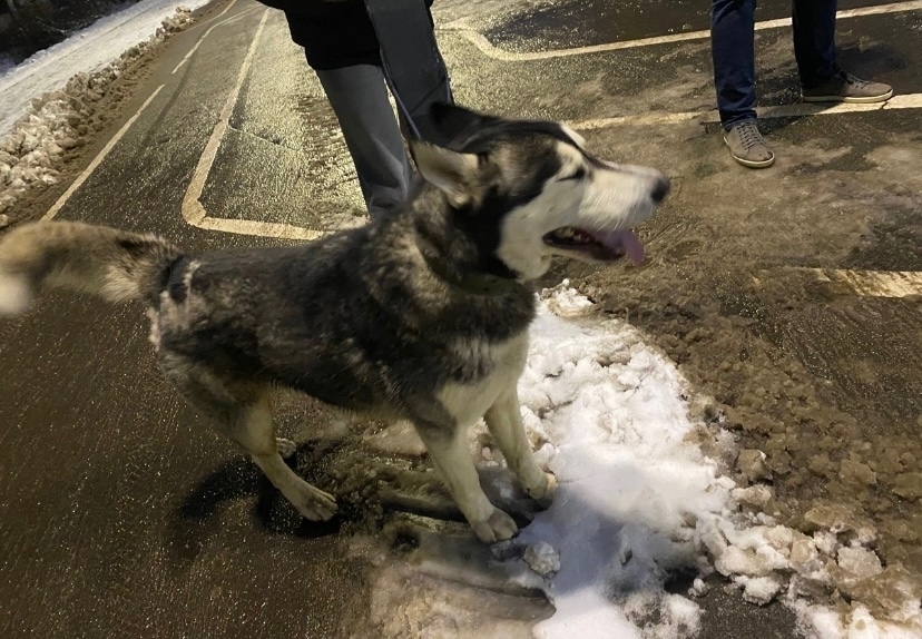 20.11.2025 Гатчина, найден хаски, кобель, лицей N3 (Коли Подрядчикова 9, Хохлова, бульвар Науки) бегал по коридорам школы, хозяин, отзовись!
