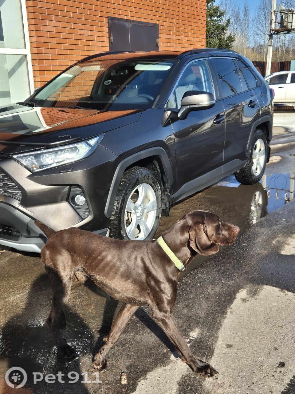 Коричневый пес, с зеленым ошейником. Бегал вокруг магнита во Власово, как будто кого то иска