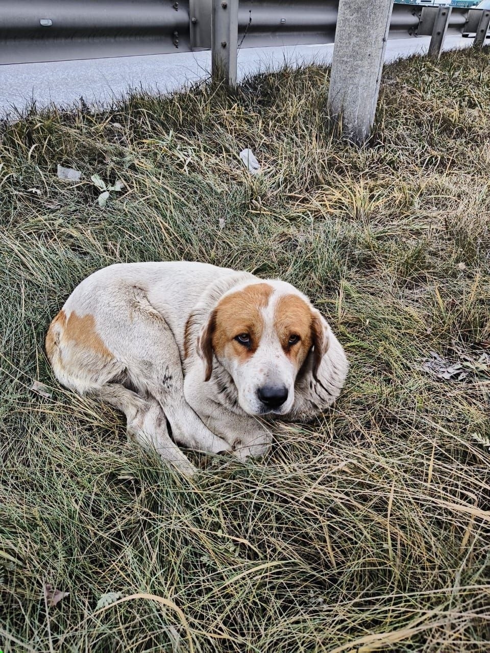 Очень нужна помощь🙏 Собака лежала без движения, возможно её сбила машина.😢