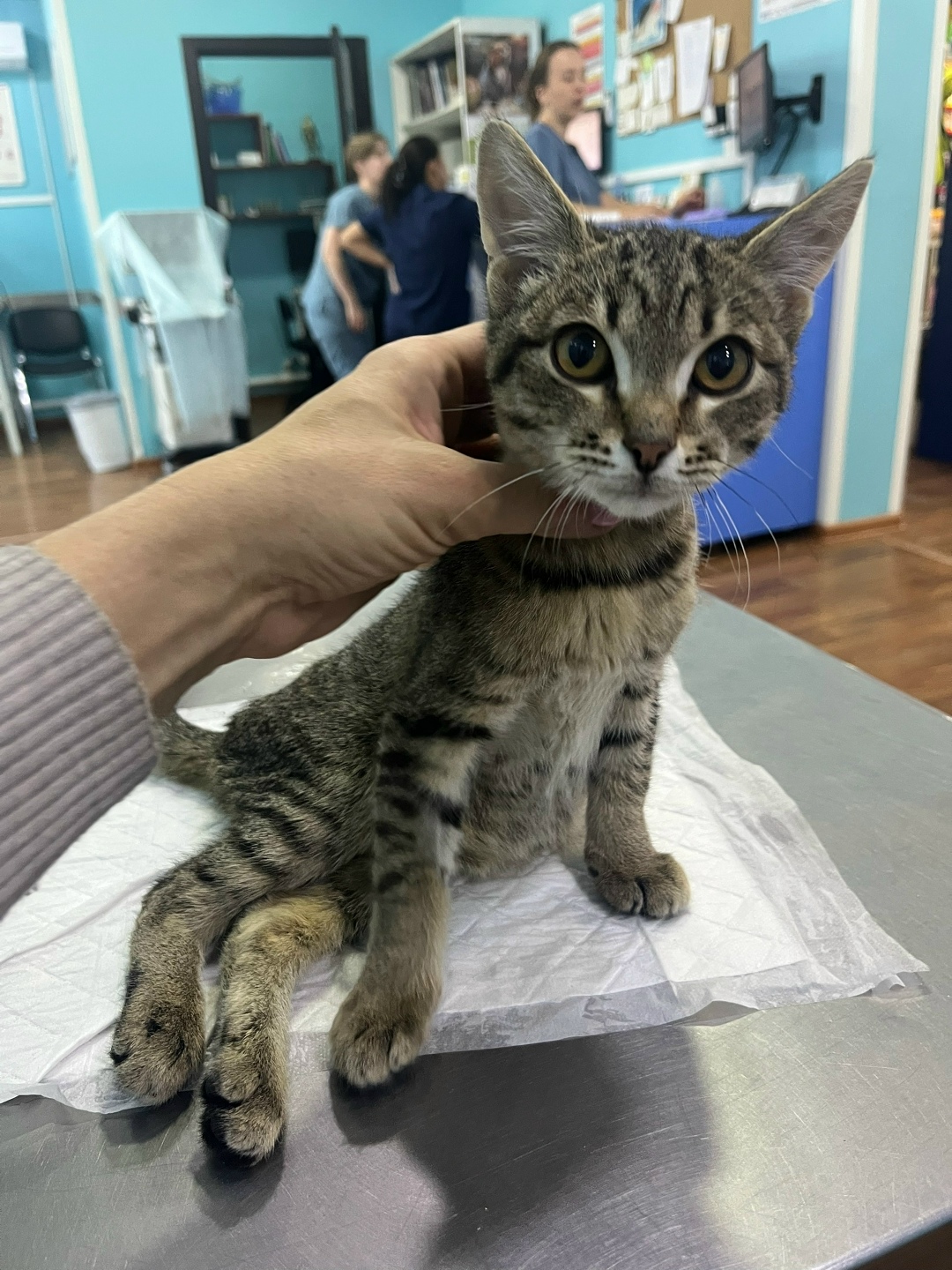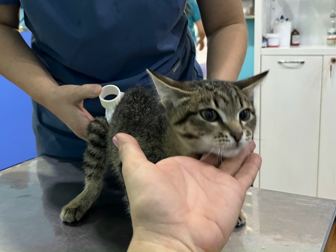 Котёнок Леон с параличом задних лапок победил вирус. Но не основной недуг - пришлось еще раз подшить ему катетер, чтобы котенок мог избавиться от излишков мочи.