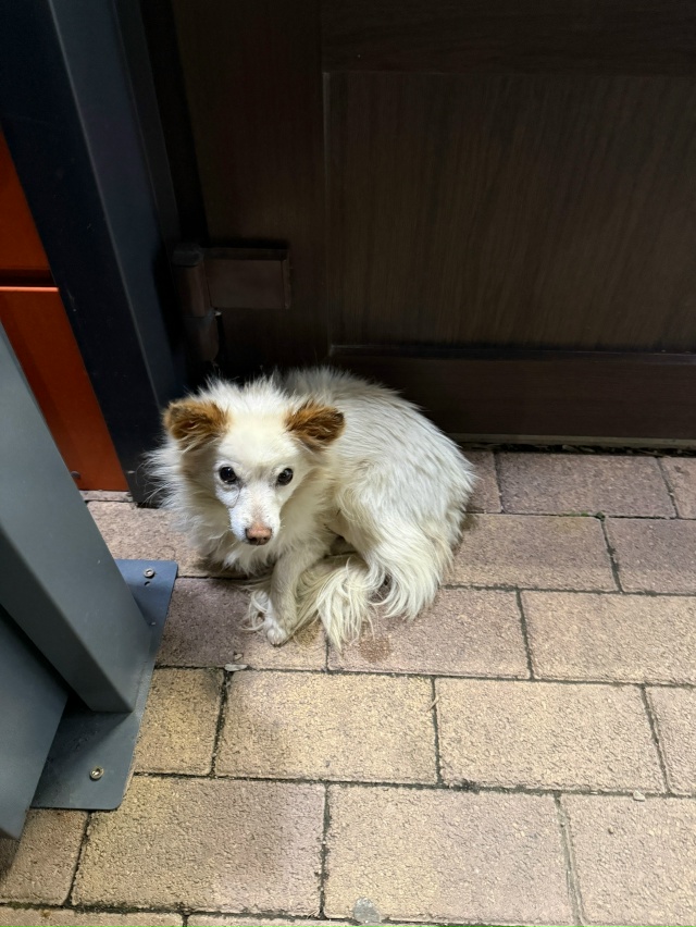 Увидели собачку совсем маленькая видимо потерялась, очень голодная, покормили. п. Тульский улица Ленина там где мясной магазин