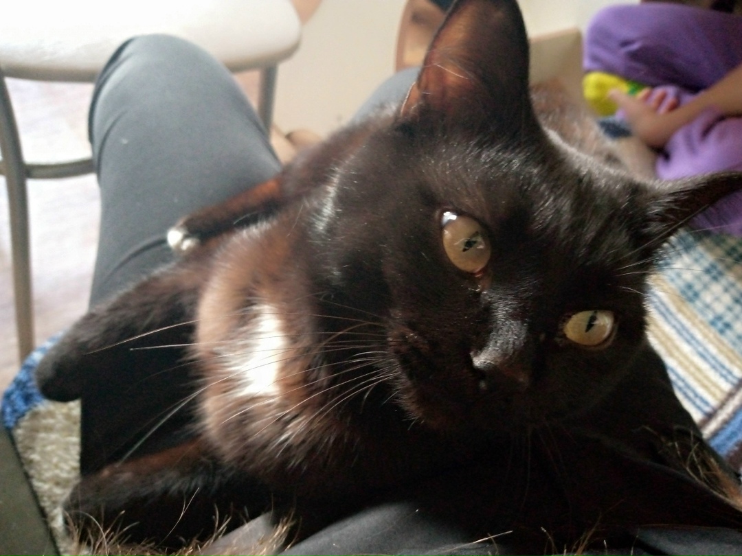 В СНТ Топольки-2 (пер. Тополевый) потерялся кот, чёрный, на груди белое пятно, пальцы белые.