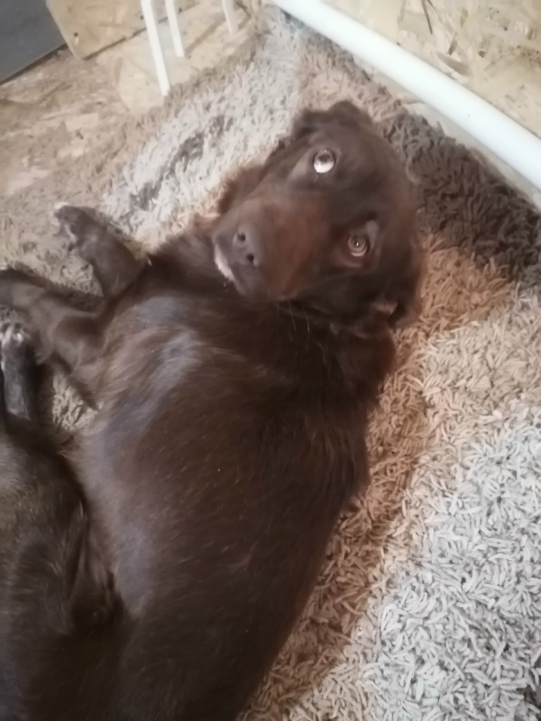 Найдена собака, голубой ошейник. Бегала голодная, замёрзшая на Ленте(остановка Алмазная) Продавцы говорят уже несколько дней там находилась. Ищем старых или новых хозяев.