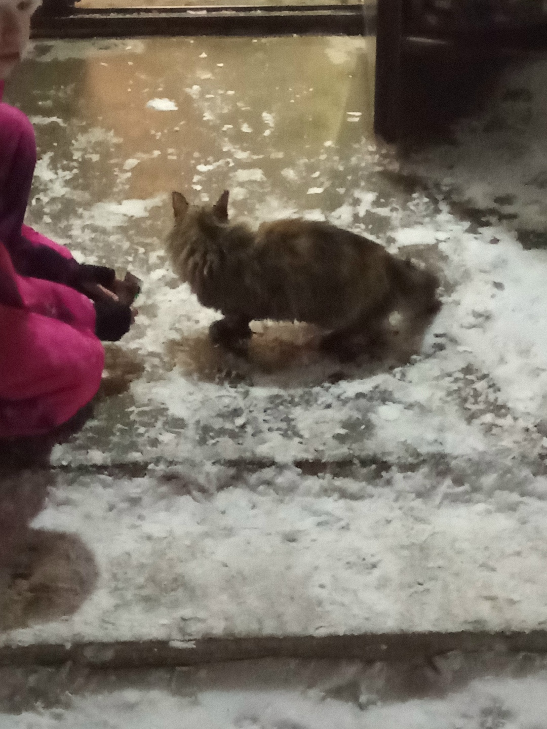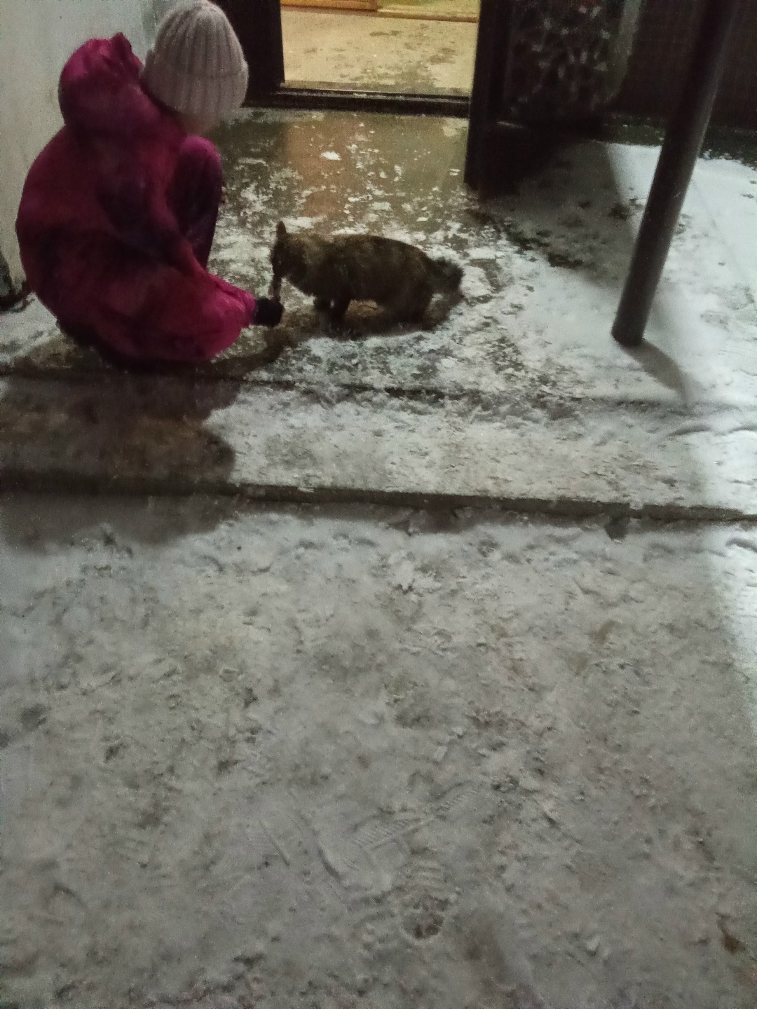Здравствуйте. Нашел сегодня кошку в 20:40 по адресу Микрорайон 41. Сидит возле здания, видно, что домашняя и ухоженная, ошейника нет. Очень пугливая, с большим трудом удалось накормить при том, что она была голодная. Нормальных фотографий сделать не удалось по той же причине. Пытались взять в подъезд нашего дома, но попытки не увенчались успехом, вывернулась и убежала обратно к 41-му дому и теперь даже к еде не подходит