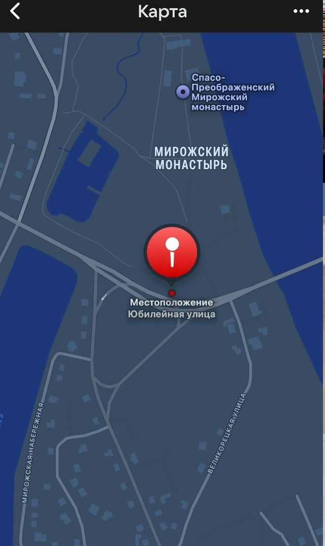Недалеко от Мирожского Монастыря, ул.Юбилейная, возле проезжей части.