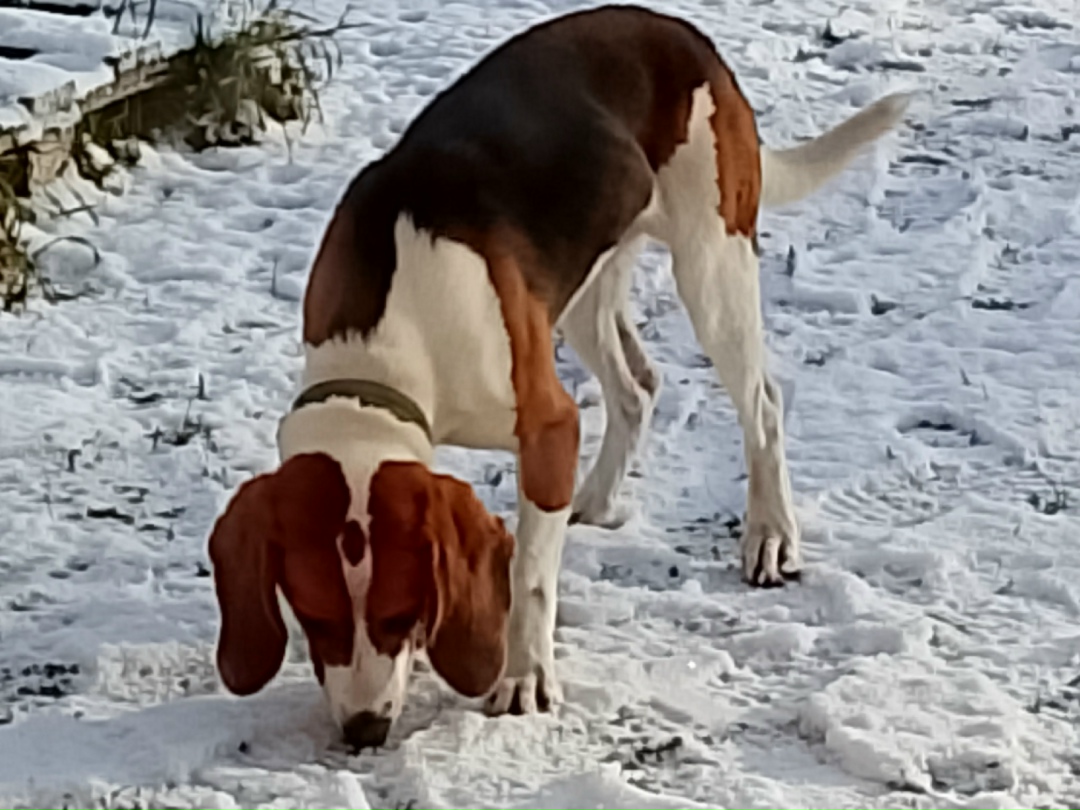 Найдена собака породы Бигль. Кобель. Д. Шлыково , Арефинское направление. Тел. 8-910-977-04-72.