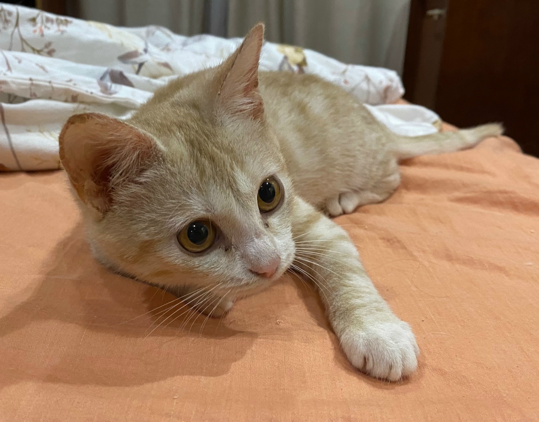 Тянется к людям, постоянно держит зрительный контакт с человеком и хорошо ладит с другими животными, но и задирам в обиду себя не даст, не тихоня. Можно второй кошкой. Умеет развлекать сама себя играми.