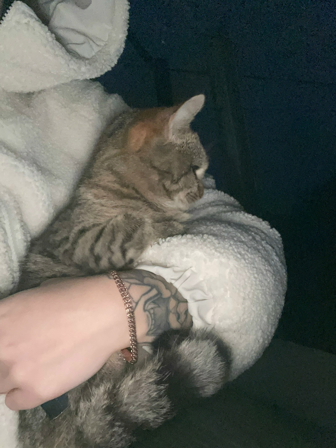 Добрый вечер! Около тц Мираж появился котёнок,вроде девочка,месяца 3-4 на вид,чистенькая,коротколапая,как будто домашняя,возможно подкинули или потерялась??
