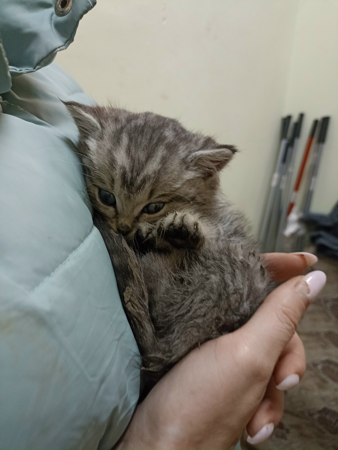 Котенок, предположительно девочка. Нашли на улице, лежала бездыханная. Положили в тепло. Пришла в себя, оттаяла. Очень слабая. Худо-бедно лакала молочко сама. Взять возможности нет, пока только можем передержать. Пушистая густая шерстка, милейшая мордашка, кошка вырастет красивая. Но сейчас ей очень нужна помощь и забота😟
