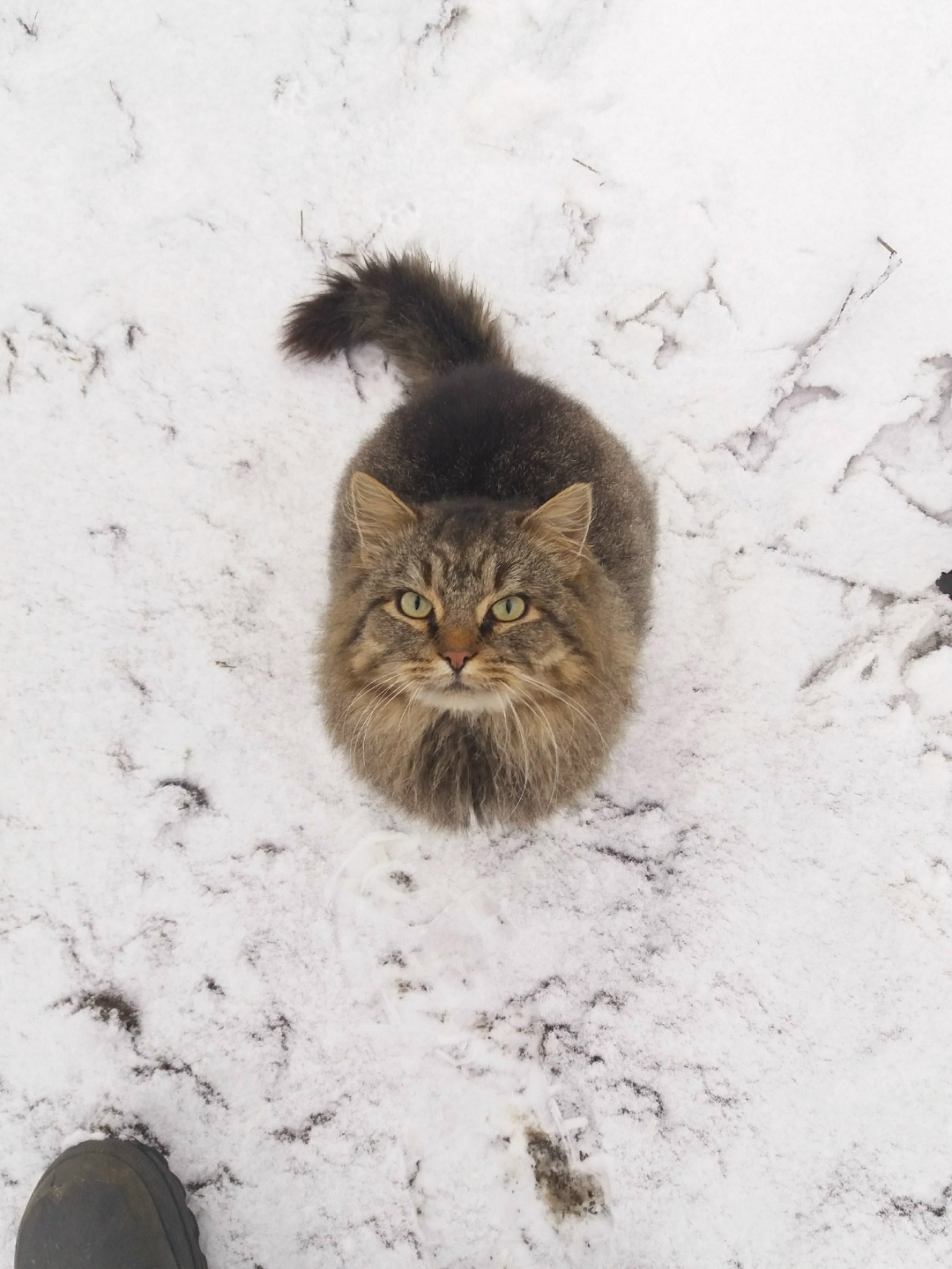 Только что написала девушка. Ее знакомый работал на объекте в лесу. К ним прибился котик. Откуда взялся никто не знает. Рядом нет жилья, даже трасса далеко.