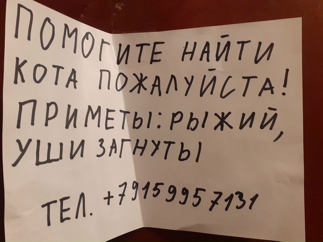 Пожилая женщина везде развесила объявление о своём коте. Интернетом пользоваться не умеет.