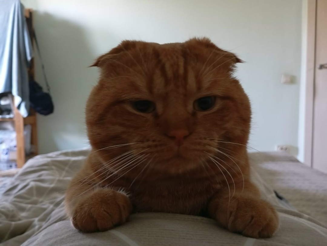 Окрас рыжий с белым, вислоухий, упитанный, не кастрат.