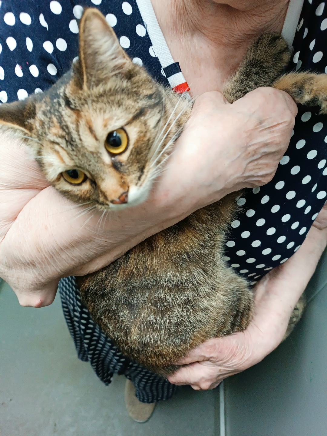 Найдена кошка (или кот) в подъезде Чкалова 29. Кошка в стрессе, пока забрали соседи на ночь.