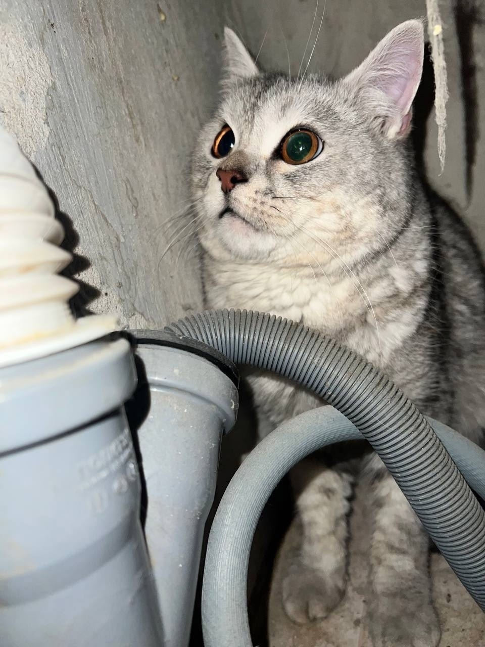 Вечером его снова выпустят на улицу, а котик видимо потерян давно, так как уже истощен прилично.