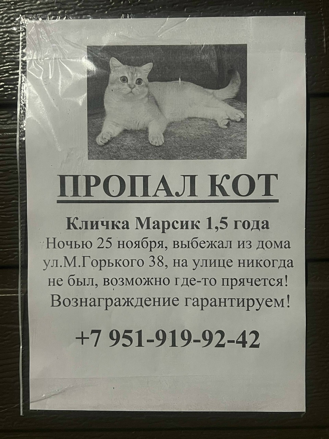 Пропала кошка — Дзержинск