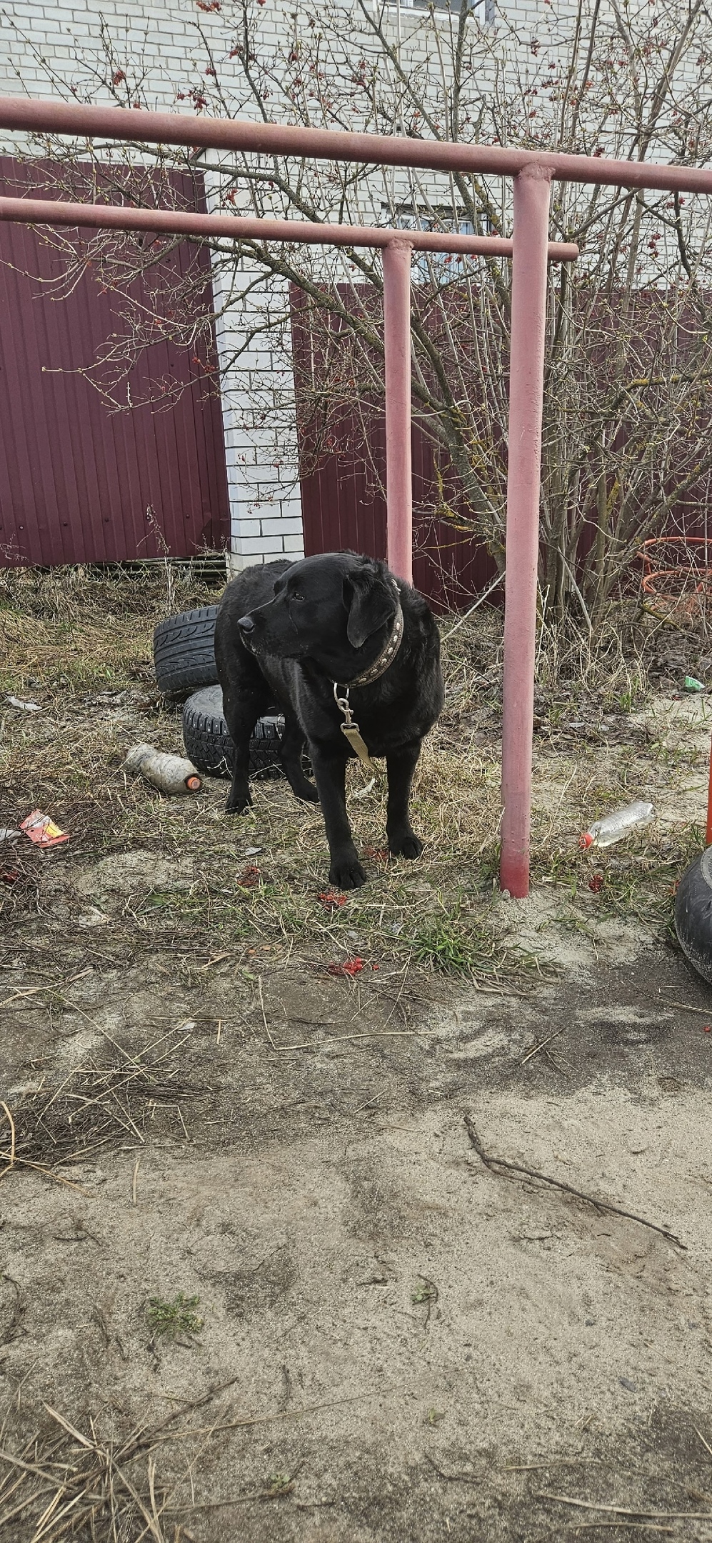 На 4-м Лиственном переулке, на детской площадке кто то привязал собаку, судя по всему лабрадор и ушёл. Может быть забыли про него или ребёнок пошёл с ним гулять и забыл. Разыскиваем хозяев.